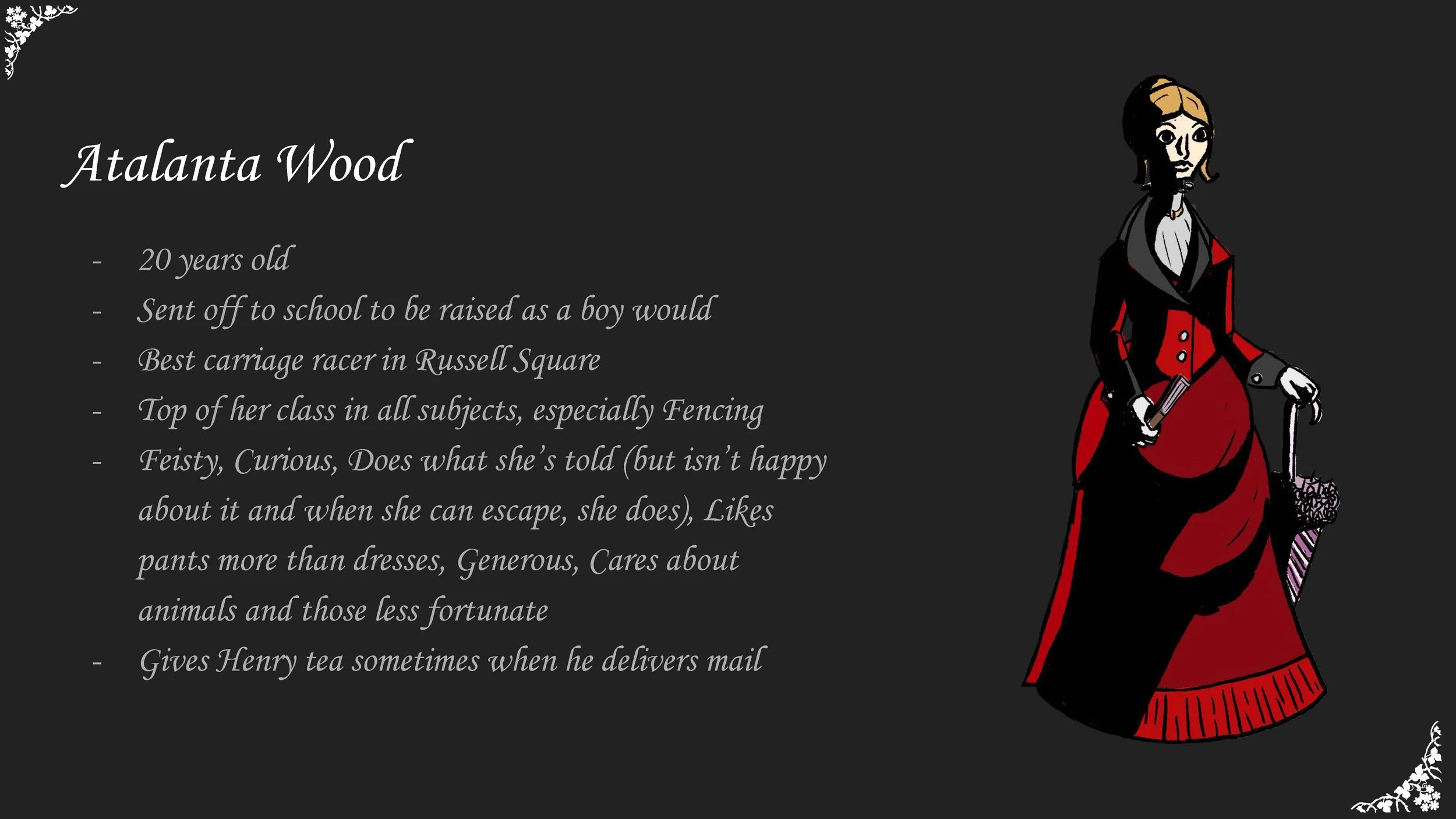 These are all specific projects or ideas. Inside you will find character design, costume designs, props, environments. All visual development made for these projects. Bonny and Read Sleepy Hollow Brigands Operation Mindcrime Atalanta